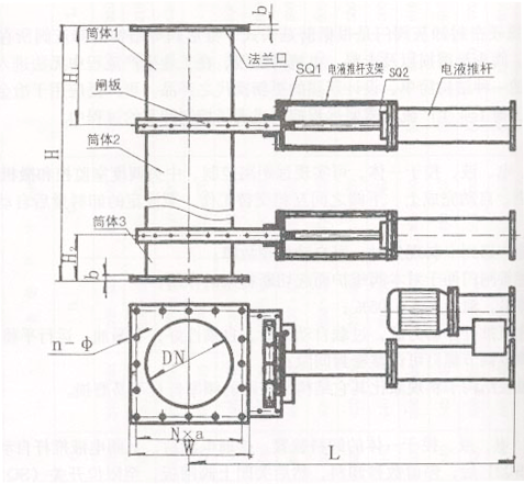 電液動(dòng)金屬硬密封卸灰閥門示意圖
