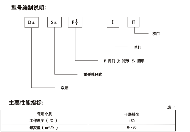 該系列閥門的閥板在物料重力作用下自動開啟,物料下落后,配重杠桿系統使閥板自動復位,防止野風吹人,從而完成物料輸送。